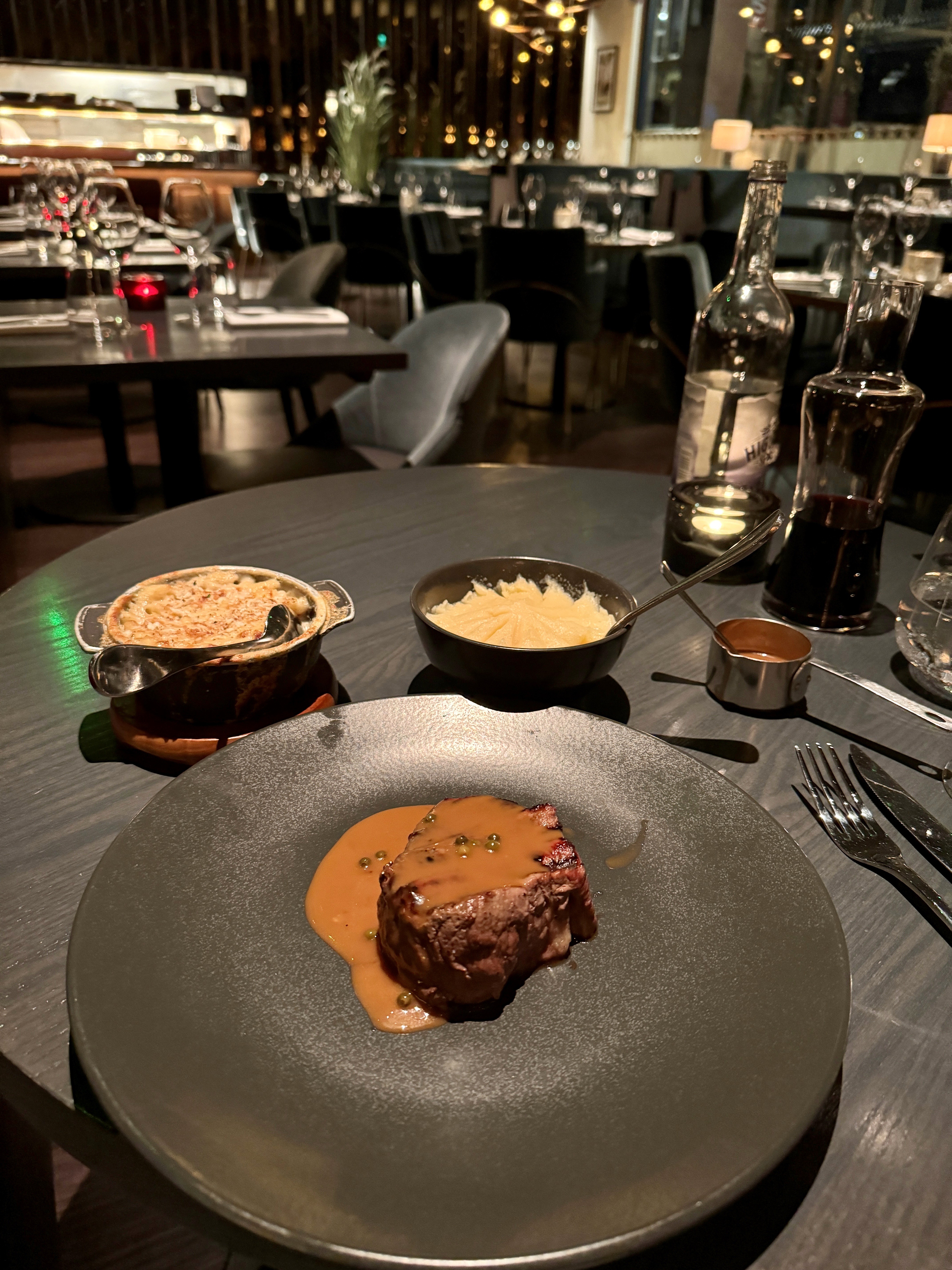During my recent visit to Glasgow, I had the pleasure of dining at Gaucho, a refined Argentine steakhouse that effortlessly blends elegance with warmth. Even as the evening stretched into the late hours, the staff remained incredibly attentive—offering gracious service that made me feel well cared for from start to finish. I began with a delightful appetizer that set the tone for the evening, followed by a perfectly cooked filet mignon accompanied by creamy mashed potatoes and the restaurant’s indulgent house macaroni and cheese. Each dish was thoughtfully paired with a rich, complimentary red wine that enhanced the depth of flavors. To finish, a beautifully presented dessert sealed the experience, making my late-night dinner feel like a true indulgence.